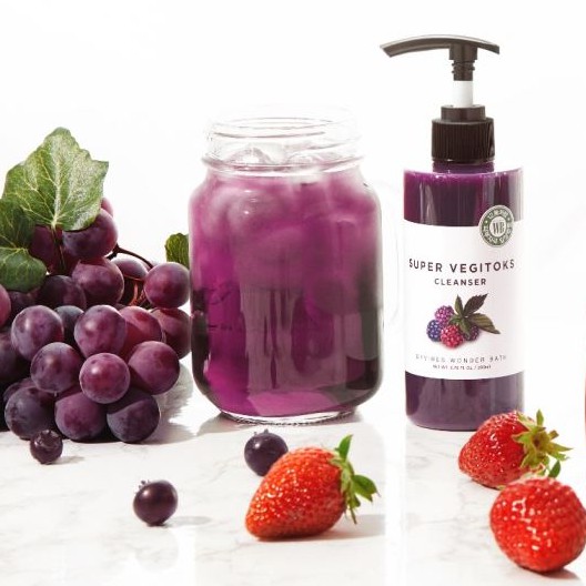 Em sữa rửa mặt sữa rửa mặt rau củ super vegitoks cleanser màu tím nằm trong bộ 3 sản phẩm super vegitoks cleanser của thương hiệu wonder bath.