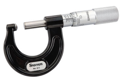 The starrett 764 series lcd outside micrometer has a deep throated frame for measuring thickness of sheet metal paper plastic or rubber parts a single value lcd readout that displays in inch and metric units with resolution to 0 00005 0 001mm for outside diameter od measurement and a vernier scale in inch units for taking precise outside diameter od measurements.